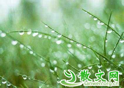 绿化带里的草儿,叶尖上缀着颗颗晶莹的小水珠。